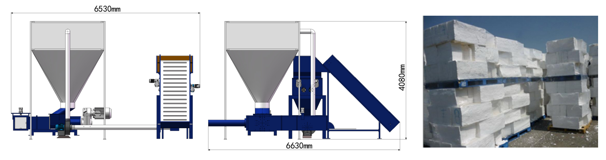 秦風機械正在制造泡沫塑料壓實機來解決這個問題,它可以減小 EPS 材料的尺寸。最終產(chǎn)品是 EPS 塊材,密度可達 400 千克/立方米。客戶可以輕松地將 EPS 材料運送到其他回收處理單元。